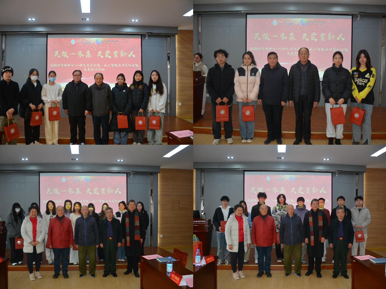 岁末暖冬聚温情,民族团结谱新篇。2025年12月31日下午,江南大学人工智能与计算机学院B310活动室暖意融融,无锡市军休中心与江南大学人工智能与计算机学院、法学院联合举办的“民族一家亲,关爱育新人”新春慰问活动在此圆满举行。无锡市军休中心党委委员、副主任黄正国,各服务站领导及军休干部代表,江南大学法学院党委副书记、副院长顾云艳,人工智能与计算机学院党委副书记、副院长王莉莉,两院辅导员及36名少数民族学生代表齐聚一堂,共话军民情谊,共叙民族团结。